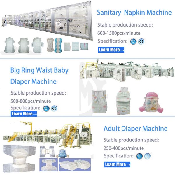 Our main products include nappy making machine, adult diaper machine, menstrual pad machine, and diaper packaging machine, along with sanitary napkin, pant diaper, mattress, and pad production lines.